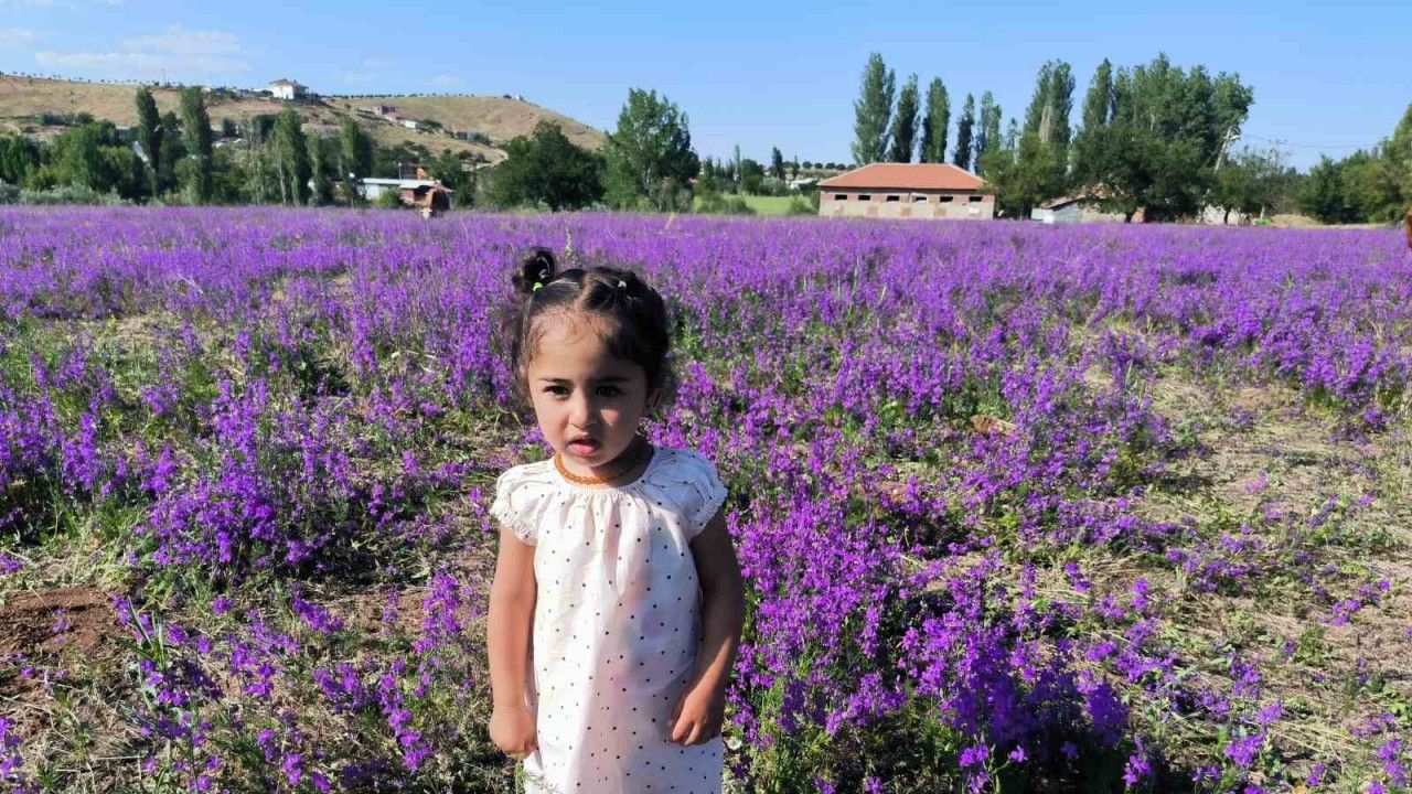 Malatya’nın Doğanşehir ilçesinde yol kenarında açan mor renkli yabani otlar, görenleri mest etti.