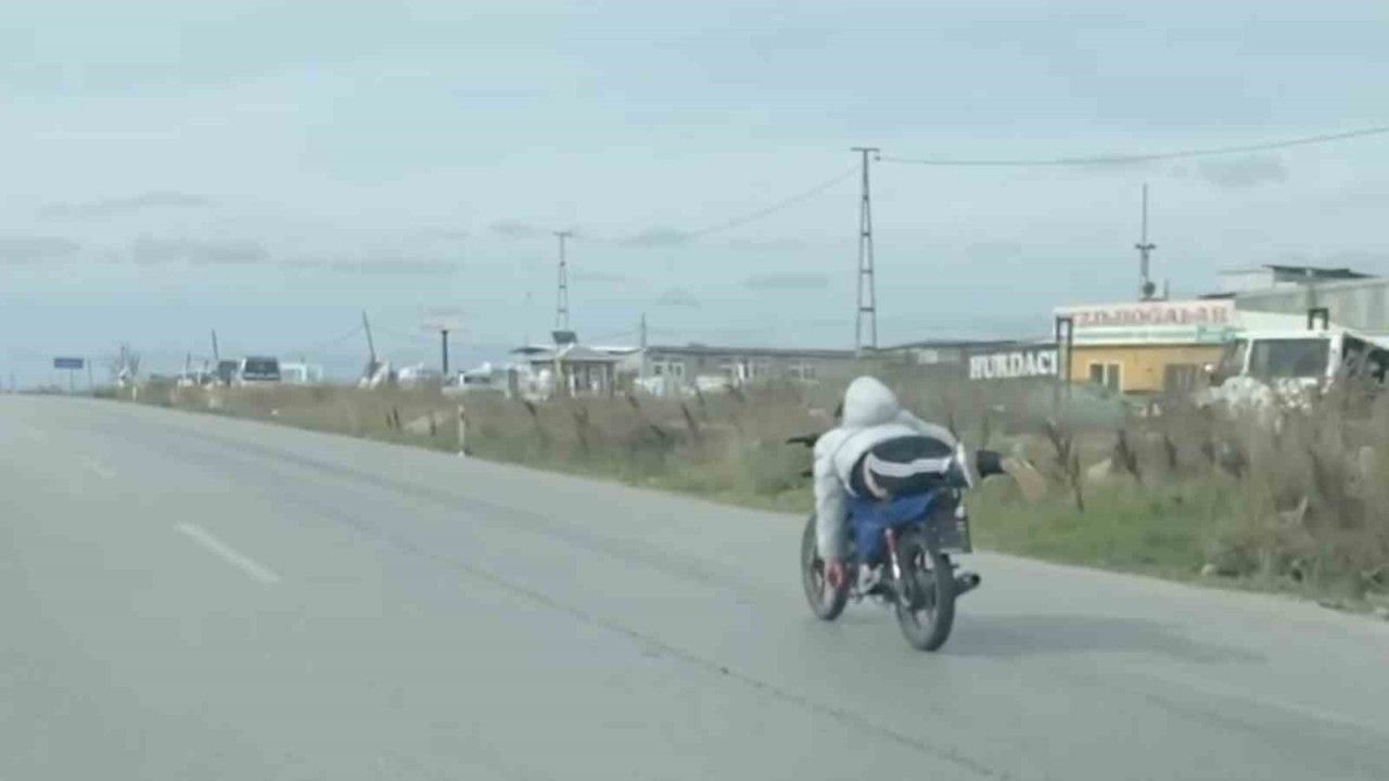 Kapaklı ilçesinde motosiklet sürücüsünün kendi canını ve diğer sürücülerin canını hiçe sayarak yaptığı tehlikeli yolculuk, otomobille seyir eden vatandaşlar tarafından cep telefonu kamerasıyla kaydedildi. Görüntülerde sürücünün motosikletin üzerine yüzüstü yatarak ilerlediği görülürken, otomobildeki yolcular şaşkınlıklarını dile getirdi.