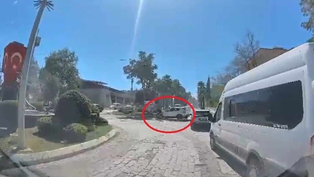 Hatay’ın Kırıkhan ilçesinde otomobil ile motosikletin çarpışma anı araç içi kamerasına yansıdı.