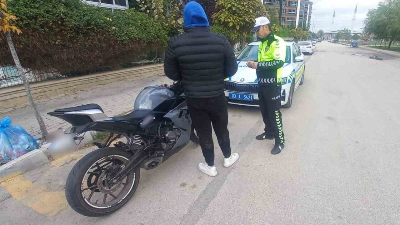 Afyonkarahisar’da kullandığım motosikletin plakasında ki rakam ve harfleri bant ile değiştirmeye çalışan ve polise yakalanan sürücüye toplamda yaklaşık 7 bin TL para cezası kesildi.