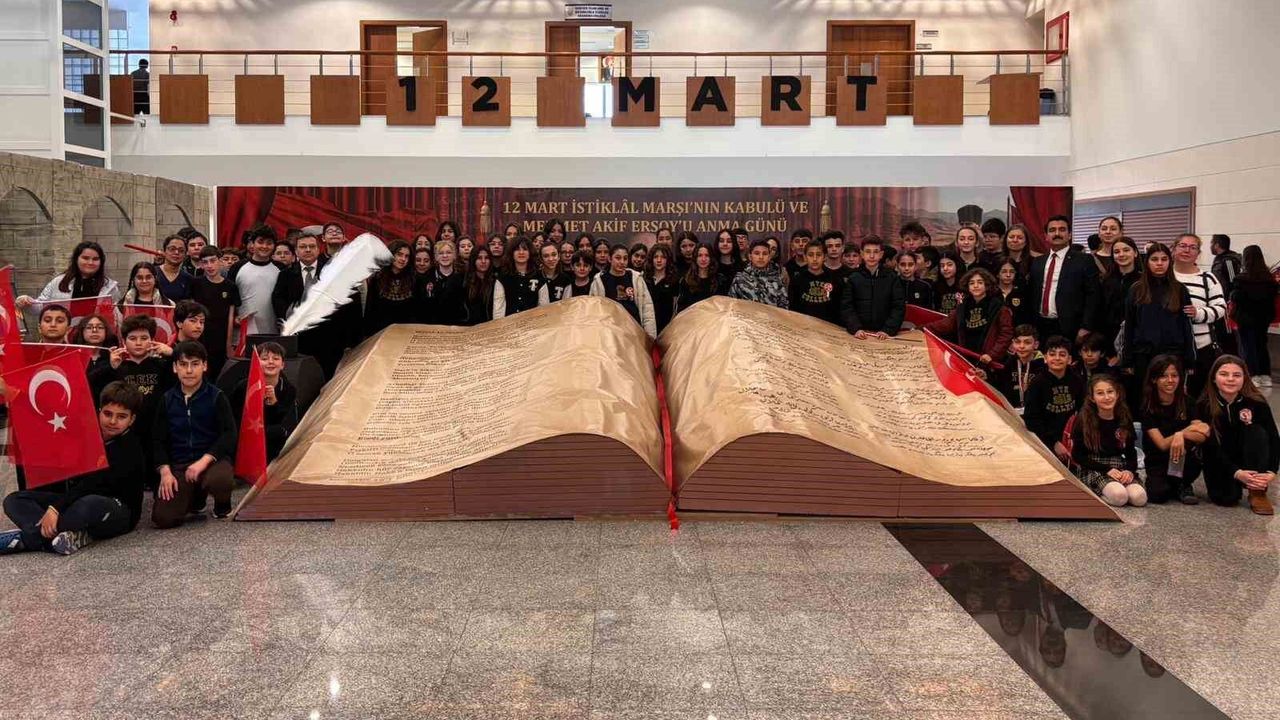 MTK Koleji'nin hazırladığı görkemli fuaye sergisi ile Kıvanç Cesur Ortaokulu'nun etkileyici sahne programı, İstiklâl Marşı'nın kabulünün 105. yılında milli değerlerimizi ve İstiklâl ruhunu güçlü bir şekilde yansıtarak akıllardan çıkmayacak bir etkinliğe damgasını vurdu.