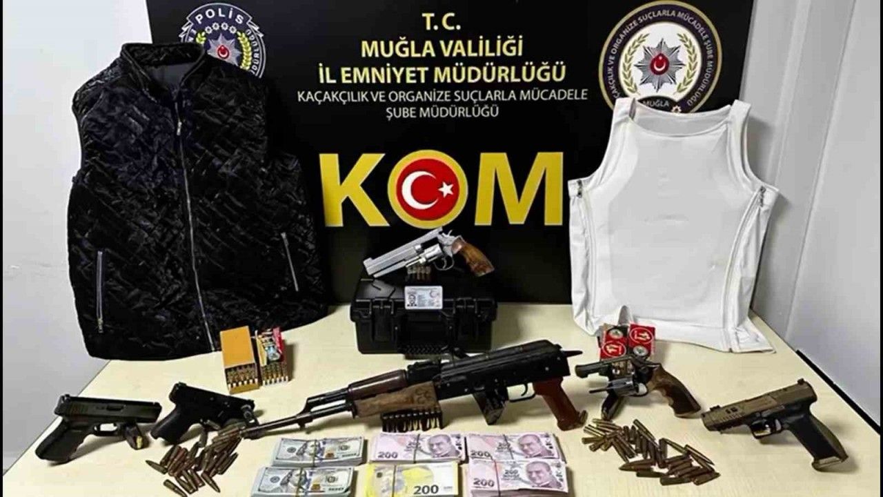 Düzenlenen operasyonda evde yapılan aramalarda; AK-47 Kalaşnikof, 2 adet ruhsatsız tabanca, ruhsatsız toplu tabanca, Glock marka ruhsatsız suikast tabancası, 287 adet değişik milimetrelerde fişek, 2 adet balistik yelek, 6 adet tabancalara ait şarjör, 5 bin 870 Euro, 19 bin 300 Dolar, 71 bin 605 TL nakit para ve sahte nüfus cüzdanı ele geçirildi.