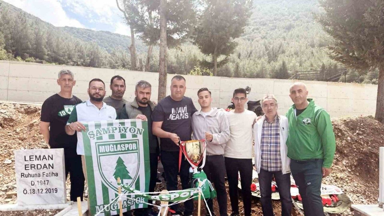 Aydınlı, "Bugün sabah saat 06.00’da deplasmandan döndük. İlk işimiz kupayı Cüneyt abimize götürmek oldu. Muğlasporumuzun bu şampiyonluğu, emeğiyle, yüreğiyle kalbimizde iz bırakan Cüneyt Erdan abimize armağanımızdır. Ruhun şad olsun, büyük Muğlasporlu" dedi.