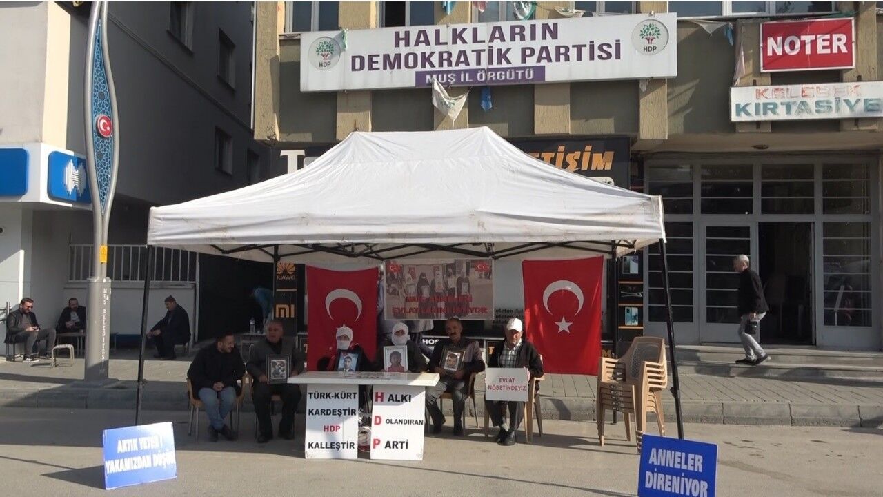 Çocuklarına kavuşma ümidiyle her hafta çarşamba günü yaptıkları eylemi bu hafta da sürdüren aileler, HDP İl Başkanlığı binası önünde bir araya geldi. Ellerinde "Halk düşmanı parti", "Evlatlarımızı vereceksiniz", "Ha HDP ha PKK", "Türk-Kürt kardeştir, HDP kalleştir", "Halkı dolandıran parti", "Anneler direniyor", "Artık yeter yakamızdan düşün" ve "Yeter artık evlatlarımızı bırakın" yazılı pankartlar açan ve çocuklarının fotoğraflarıyla eyleme katılan anne ve babalar, evlatlarına "teslim ol" çağrısında bulundu.
