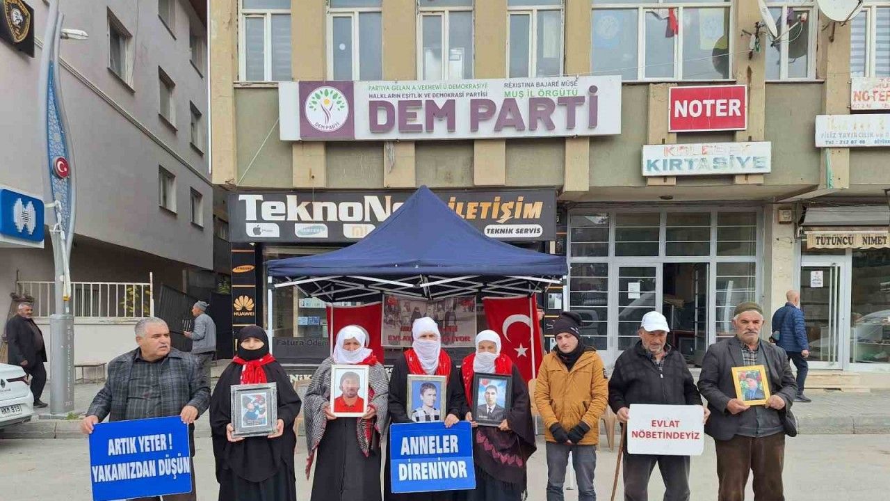 Muş’ta DEM Parti İl Başkanlığı önünde evlat nöbetine devam eden aileler, çocuklarına bir kez daha "teslim olun" çağrısı yaptı.