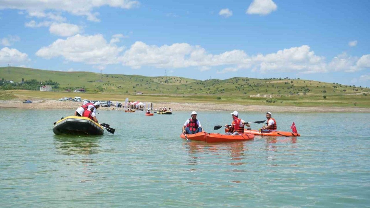 Muş’ta, ’Gençlik ve Spor Festivalleri’ kapsamında düzenlenen kano ve rafting etkinliği, Alparslan 2 Barajı’nda renkli görüntülere sahne oldu.