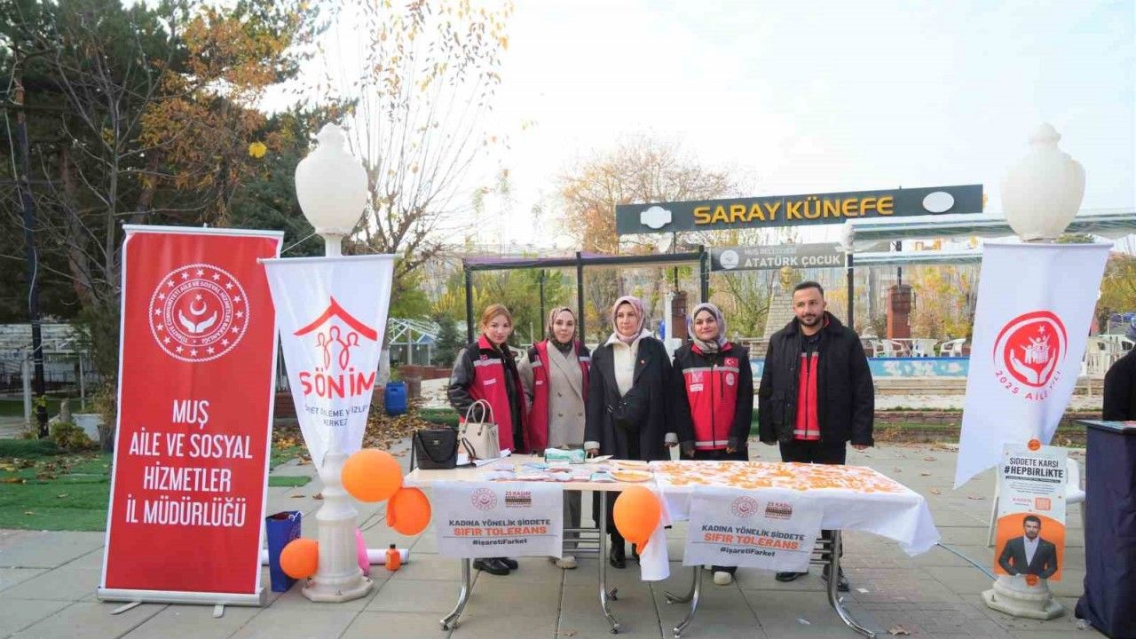 Kadına Yönelik Şiddete Karşı Uluslararası Mücadele Günü kapsamında Muş Aile ve Sosyal Hizmetler İl Müdürlüğü ile Kadın ve Demokrasi Vakfı (KADEM) iş birliğinde kentin en işlek noktalarından İstasyon Caddesi üzerinde tanıtım standı kuruldu.