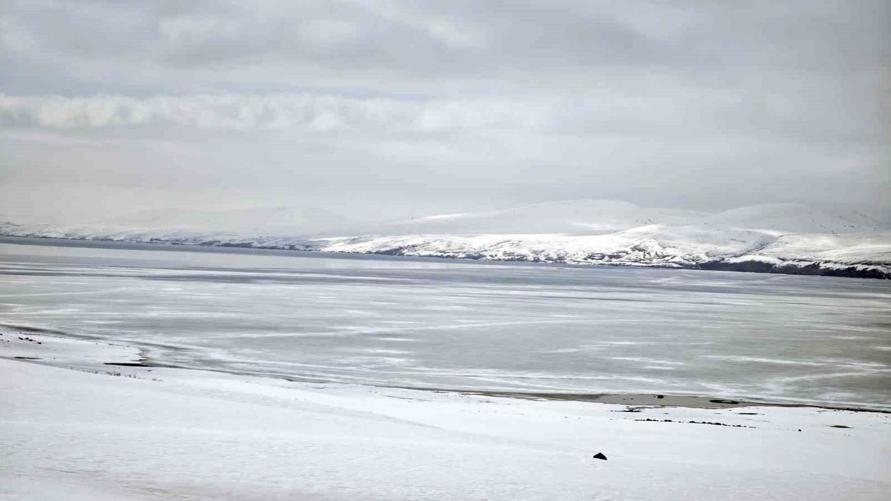Bitlis'in Ahlat ilçesindeki Nazik Gölü'nde kış aylarında oluşan buz tabakasının çözülmesi bu yıl gecikti.