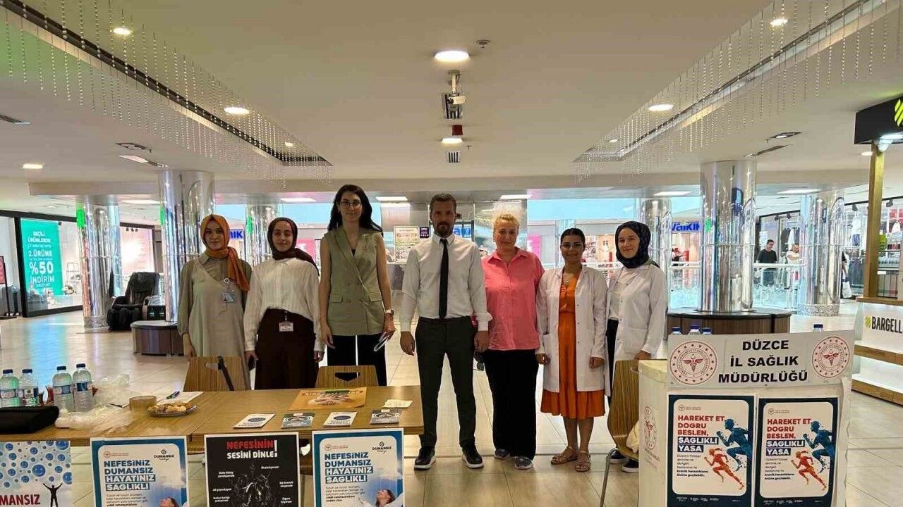 Düzce merkezinde bulunan alışveriş merkezlerinde kurulan stantlarla, bu yılın teması olan "Nefesiniz Dumansız, Hayatınız Sağlıklı" sloganı doğrultusunda vatandaşlara yönelik çeşitli bilgilendirme ve sağlık hizmetleri sunuldu.