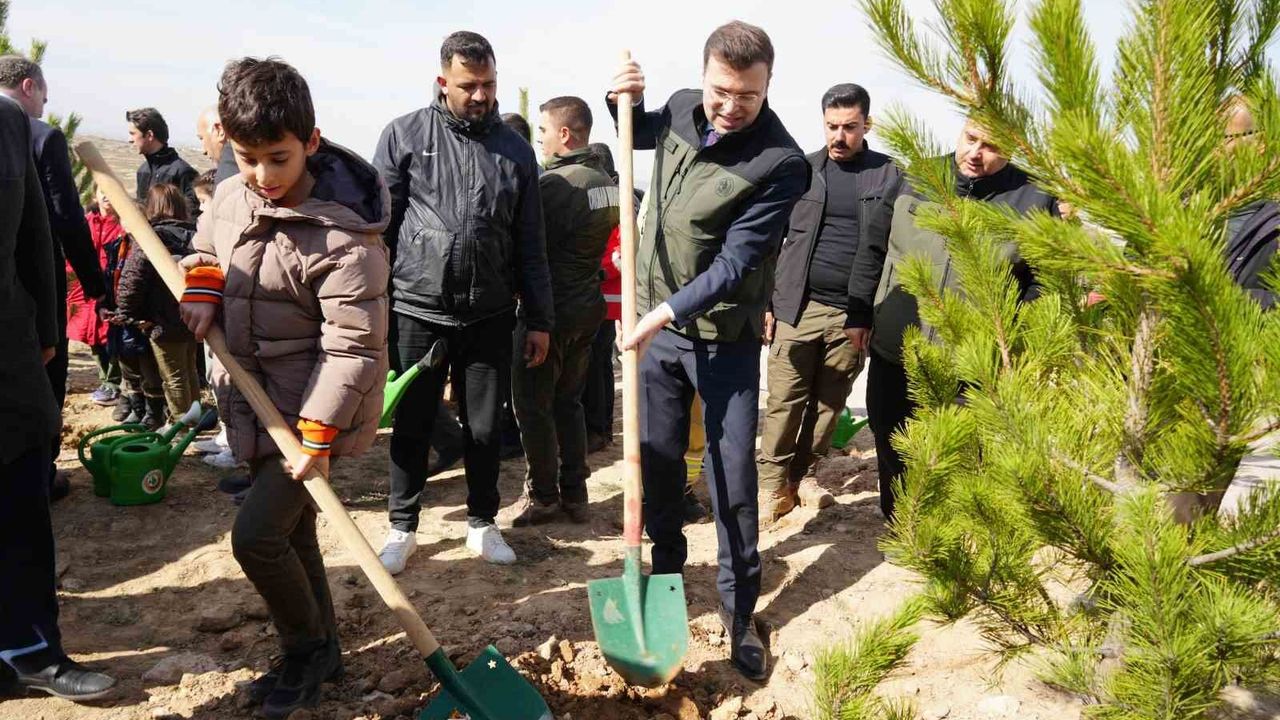 Konuşmaların ardından protokol üyeleri, öğrenciler ve vatandaşlar, fidanları toprakla buluşturarak can suyu verdi.