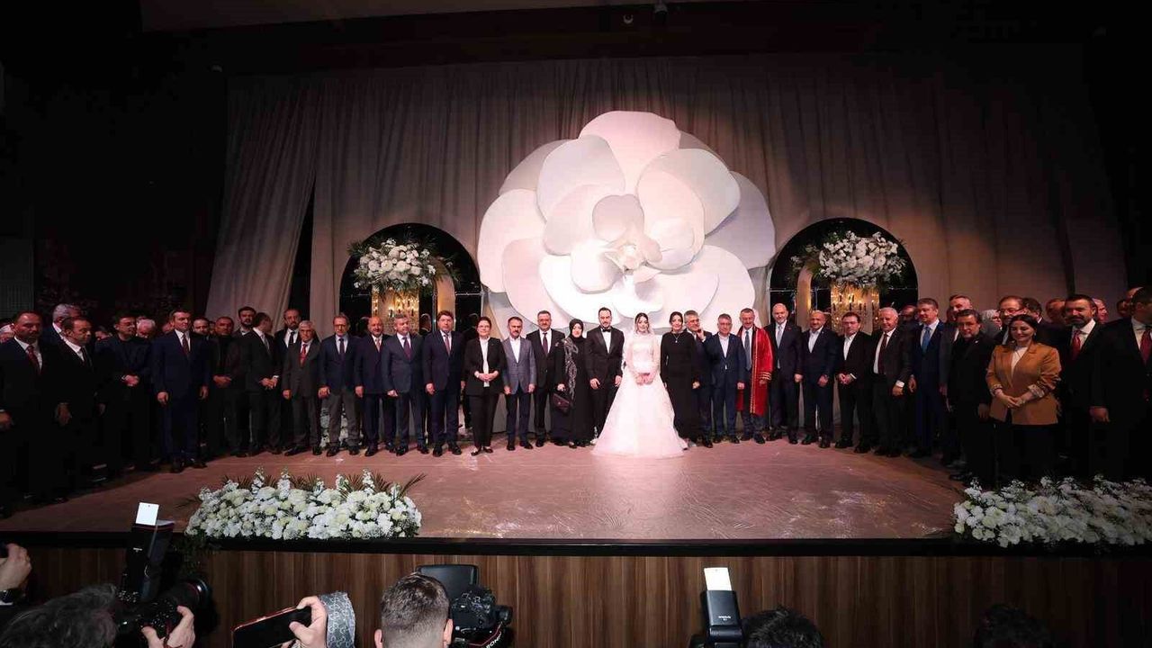 Eski Bilim, Sanayi ve Teknoloji Bakanı Fikri Işık, çifti tebrik ederek evlilik cüzdanını geline takdim etti.