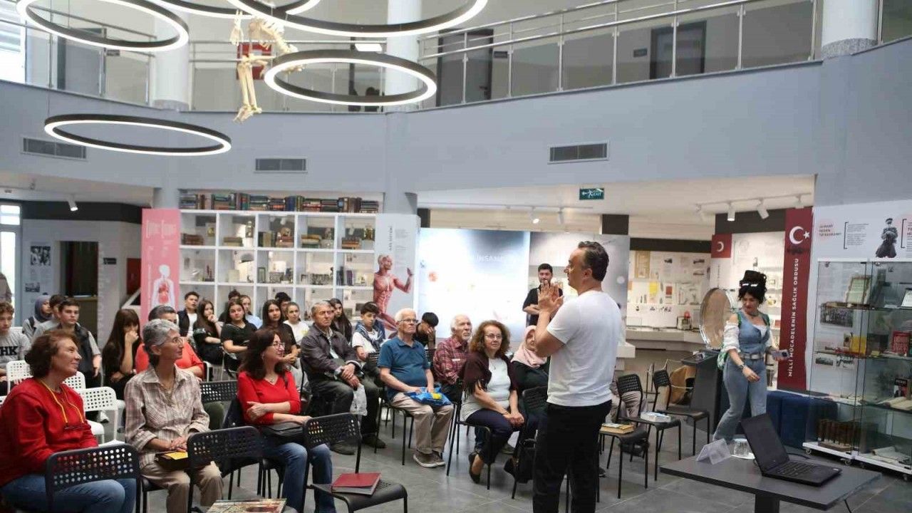 Nilüfer Belediyesi Dr. Ceyhun İrgil Sağlık Müzesi’nde gerçekleşen etkinlikte İş Güvenliği ve İlk Yardım Uzmanı Hasan Hür, doğru ilk yardım müdahaleleri hakkında bilgi vererek uygulamalı olarak gösterdi.