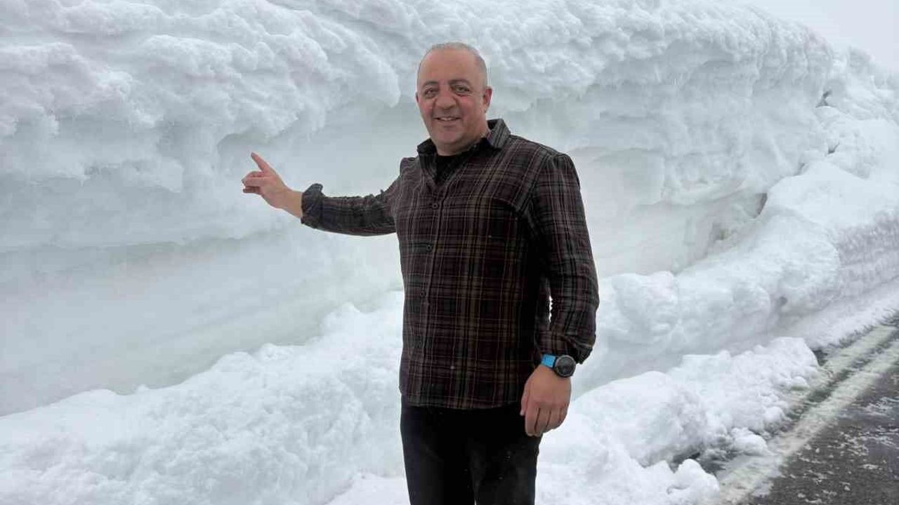 Cep telefonuyla kaydedilen görüntülerde karayolunun beyaza bürünmesi ve kar yağışı ve karayolunun iki tarafında yığılan metrelerce yükseklikte buluna kar kütleleri yer alıyor.