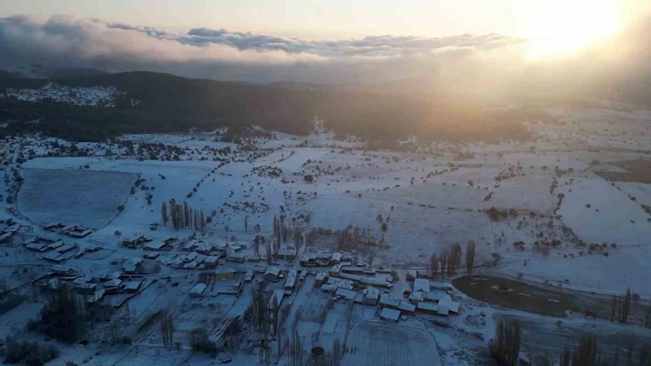 Eskişehir'in yüksek rakımlı ilçesi Mihalıççık'ın bazı mahallelerine Nisan ayının ortasında yağan kar şaşırttı.