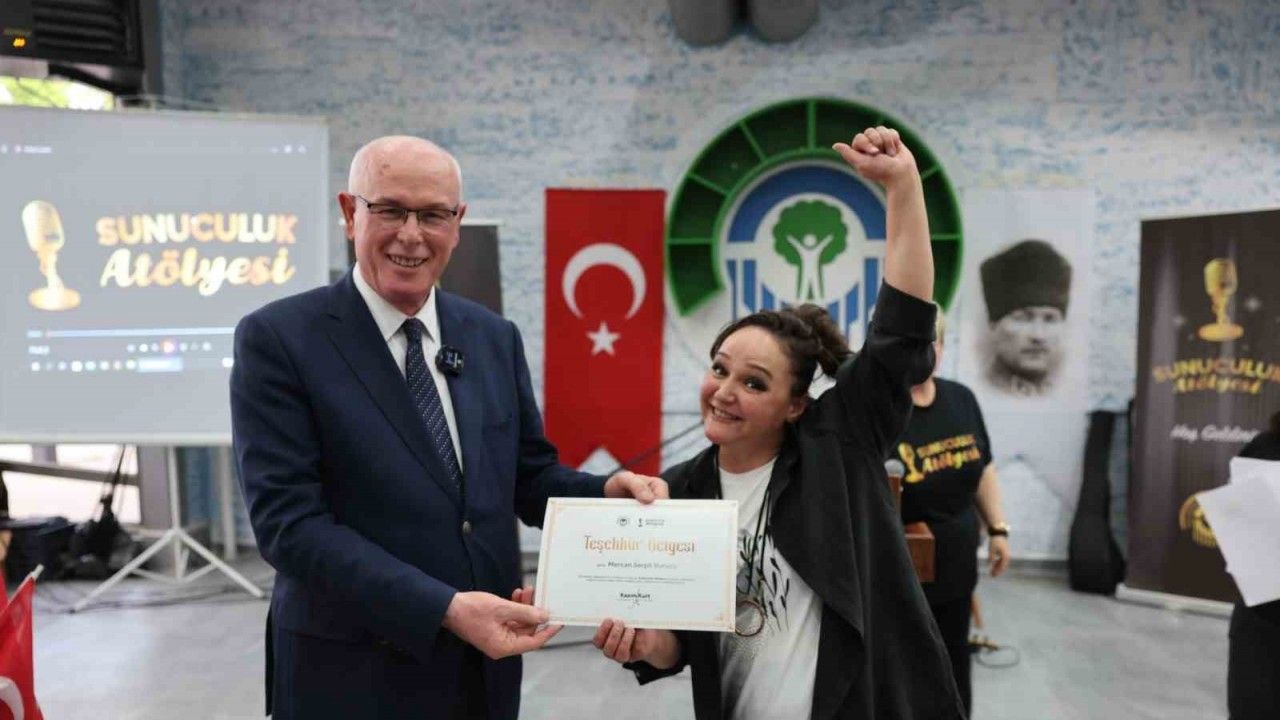 Törende konuşan Odunpazarı Belediye Başkanı Kazım Kurt, Sunuculuk Atölyesi’nin başarısını ve katılımcıların gösterdiği çabayı takdir etti. Bazı mezunların İstanbul’da mesleki hayata adım atacak olmasının gurur verici olduğunu belirten Kurt, atölyenin sunduğu katkıya dikkat çekerek, "Odunpazarı Belediyesi olarak, sosyal belediyeciliğin gereği olarak kültür ve eğitim alanında atölyeler düzenliyoruz. Amacımız, refah ve kültür düzeyi yüksek bireylerle kentleşmek. Bu atölye, bu vizyonun en güzel örneklerinden biri" dedi. Konuşmaların ardından, Başkan Kazım Kurt mezunlara katılımcı belgeleri ile bu yıl ilk defa hazırlanan Sunuculuk Atölyesi Yıllığını takdim etti. Atölye üyeleri de Başkan Kurt’a desteklerinden dolayı teşekkür ederek anlamlı hediyeler sundu.