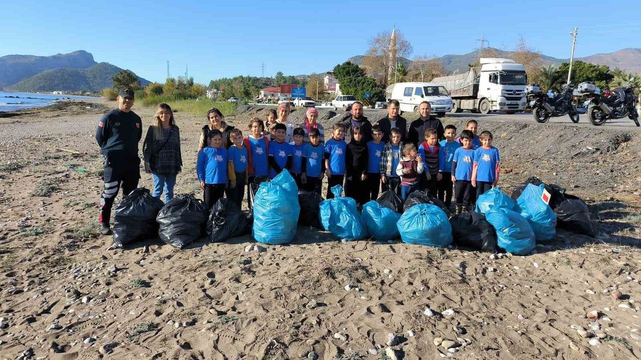 Mersin'in Bozyazı ilçesinde öğrenciler, öğretmenler, veliler ve jandarmanın katılımıyla sahil temizliği gerçekleştirdi.