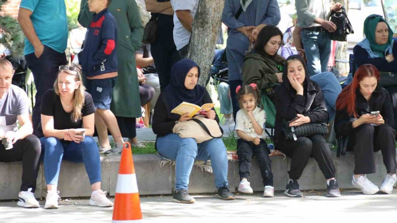 Eskişehir’de veliler Yükseköğretim Kurumları Sınavı’nın (YKS) ikinci oturumu olan Alan Yeterlilik Testi’ne (AYT) giren evlatlarını dışarıda kamp sandalyelerini kurup çay içerek ve dua ederek beklediler.