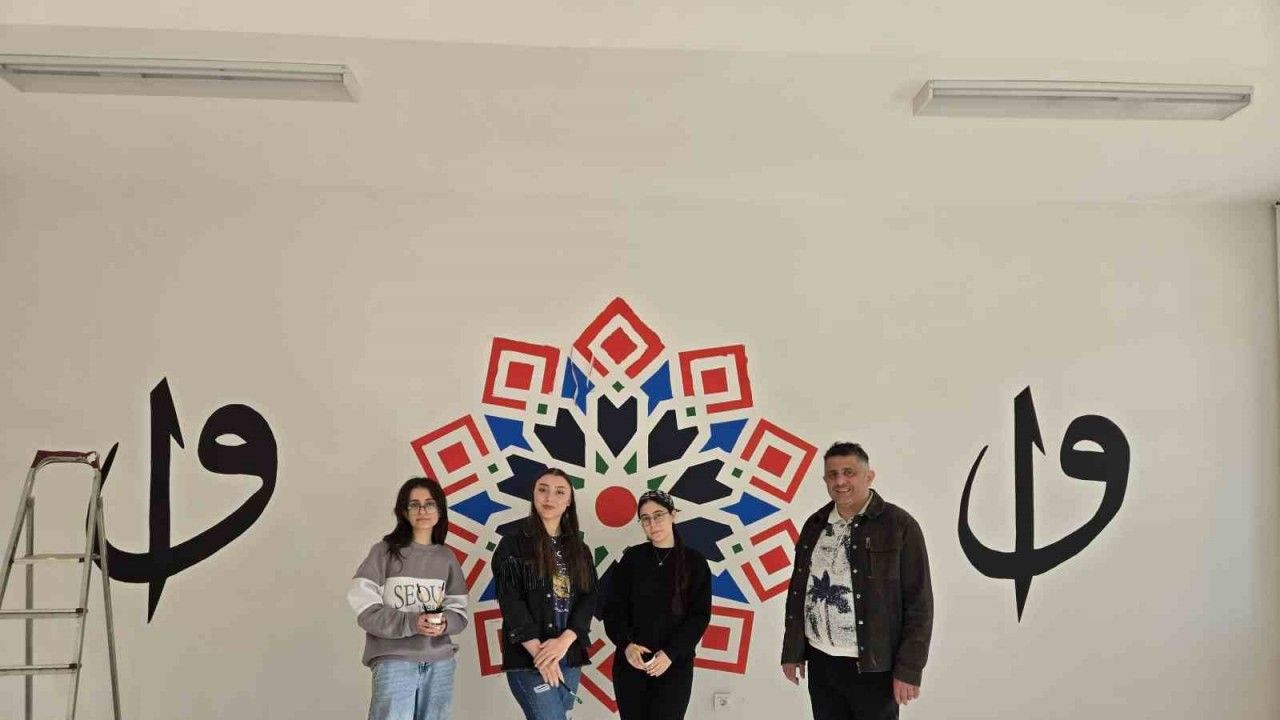 Öğrenciler, İslam hat sanatının önemli unsurları olan "Allah" lafzı ve "Vav" harfini, Selçuklu yıldızı motifleriyle harmanlayarak duvarlara titizlikle uyguladılar. Renklerin, çizgilerin ve derin anlamların buluştuğu bu çalışma sayesinde okuma salonunun duvarları, artık sadece bakılan değil, aynı zamanda düşündüren ve hissettiren birer sanat eserine dönüştü.