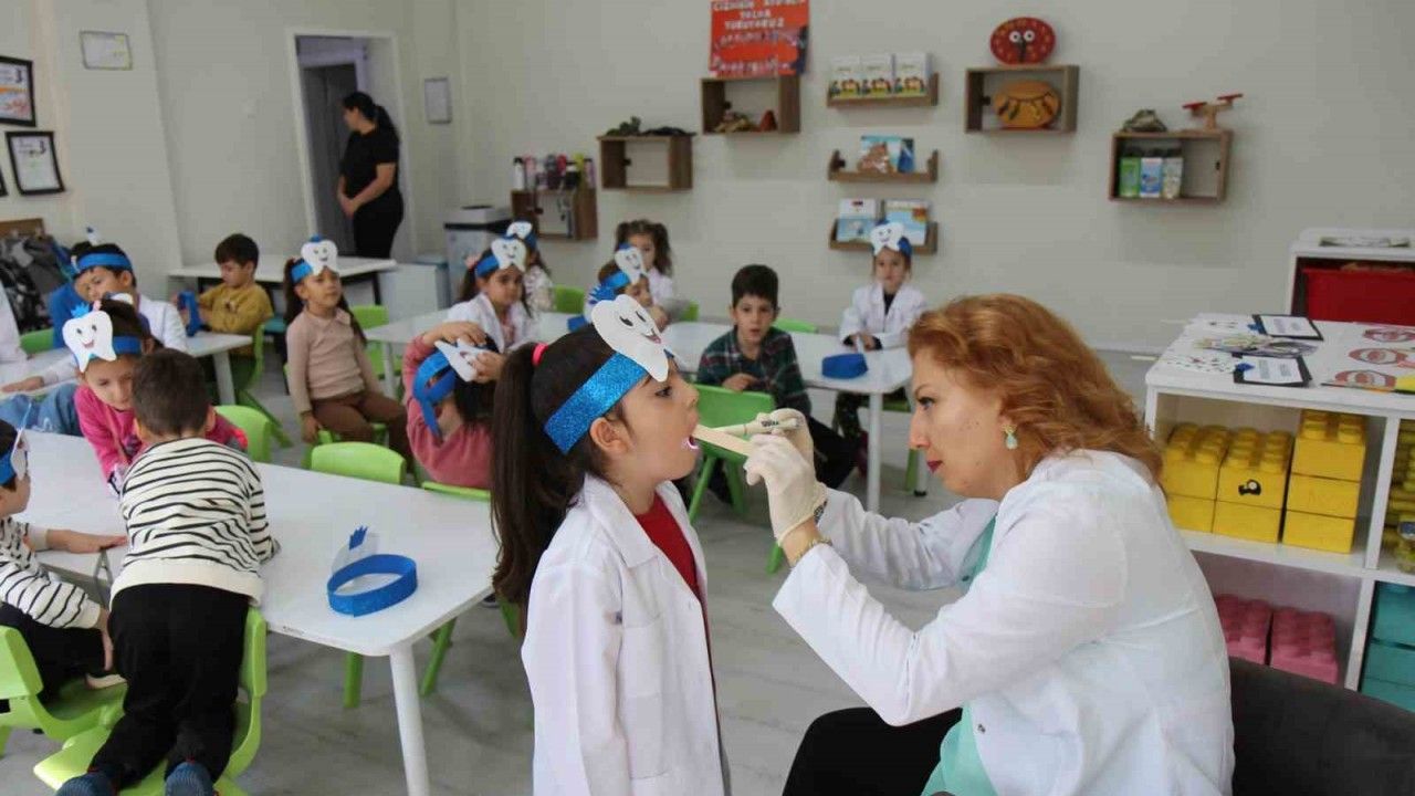 17-23 Kasım Toplum Ağız ve Diş Sağlığı Haftası’nda çocuklara diş fırçalama alışkanlığını kazandırmak, erken yaşlarda ağız ve diş sağlığının önemini anlamalarını sağlamak amacıyla Zübeyde Hanım Anaokulu’nda etkinlik düzenlendi. Denizli İl Sağlık Müdürü Uz.Dr. Berna Öztürk, İl Milli Eğitim Müdürü Emre Çalışkan, öğretmenler ve öğrencilerin katıldığı etkinlikte Diş Hekimi Fethiye Çelik tarafından öğrencilere ağız ve diş bakımının nasıl yapılacağı, doğru diş fırçalama teknikleri konusunda bilgi verildi. Diş maketi üzerinde diş fırçalamanın nasıl yapılacağını öğrenen minik öğrenciler, hem eğlendi, hem de merak ettikleri soruları sordu.