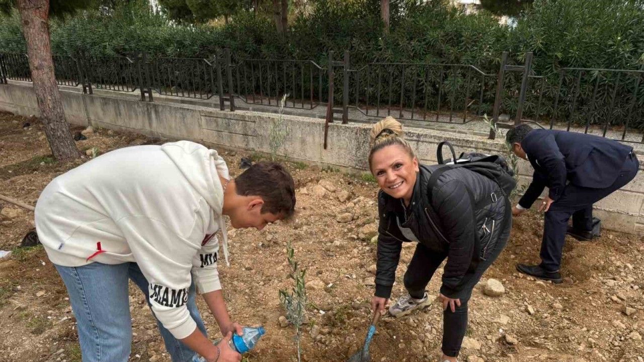 Okul bahçesinde gerçekleştirilen program kapsamında ’Her çocuğun bir ağacı var’ projesi çerçevesinde 60 adet zeytin fidanı toprakla buluşturuldu. Kökleri geçmişi, dalları ise geleceği temsil eden zeytin ağacı, barış ve sürdürülebilir yaşamın simgesi olarak öğrenciler tarafından dikildi.