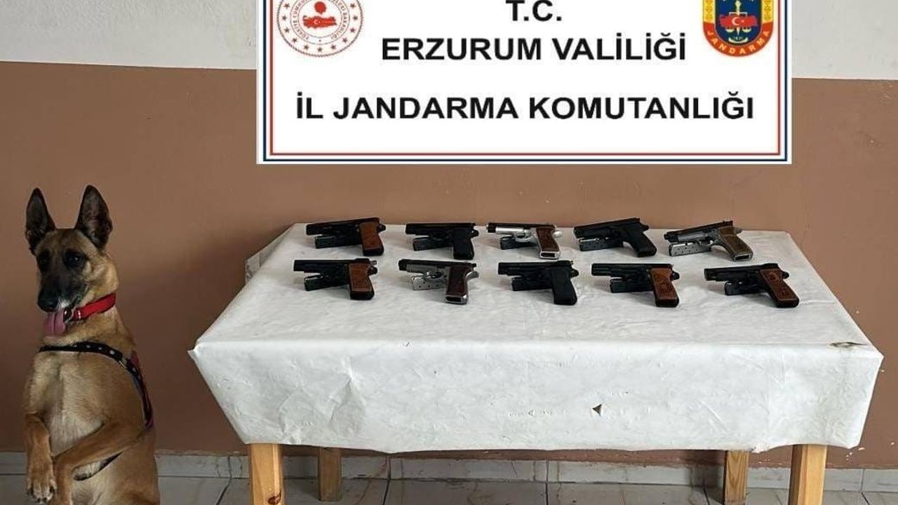 Erzurum İl Jandarma Komutanlığına bağlı Oltu İlçe Jandarma Komutanlığınca Oltu ilçesinde Bomba Arama Köpeği Yazı’nın da katıldığı operasyon neticesinde, 10 adet 9 mm çapında ruhsatsız Browning ve MP92 marka tabanca ile 10 adet şarjör ele geçirildi.