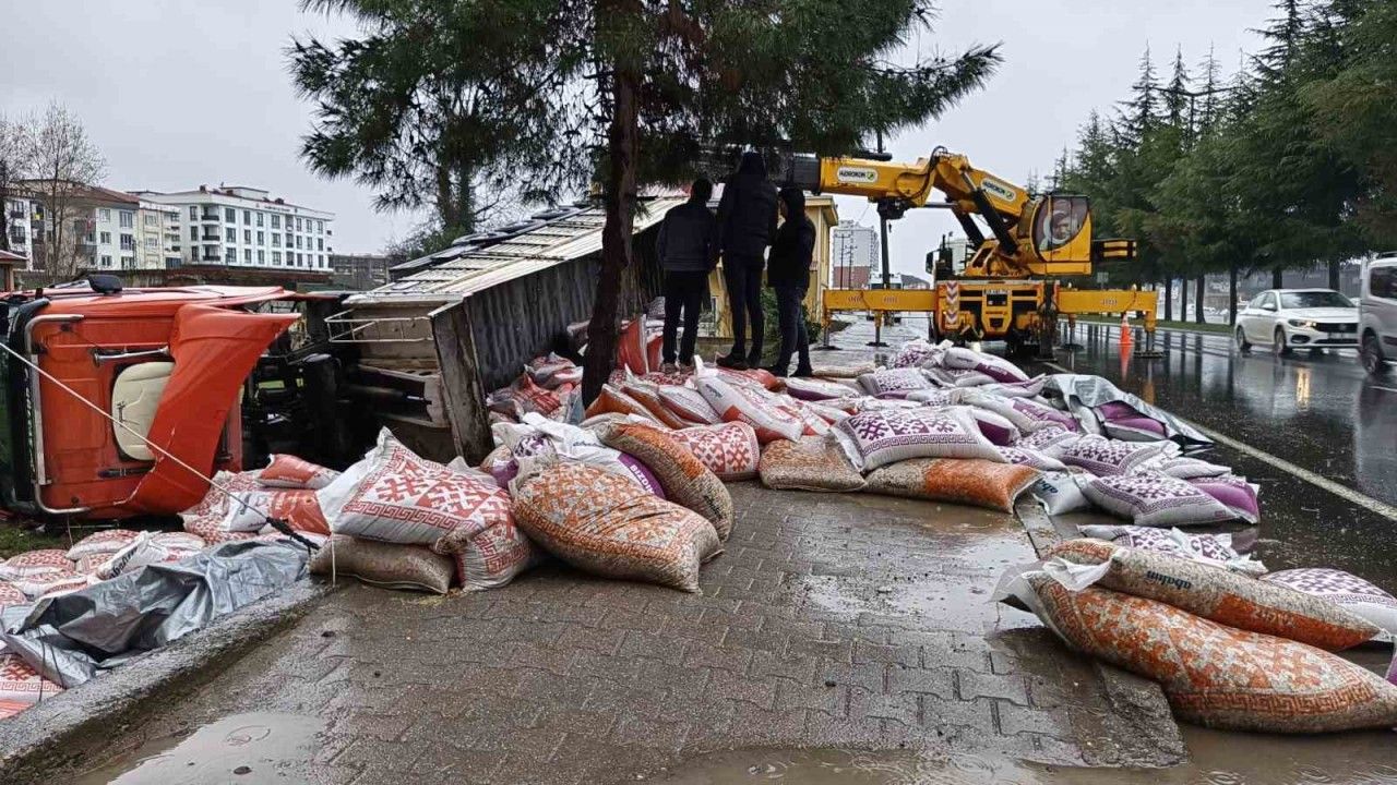 Kaza, Turnasuyu Mahallesi Ordu-Giresun yolu üzerinde meydana geldi. Edinilen bilgiye göre, Ferda Gültaş idaresindeki Scania marka 61 K 11522 plakalı besi yemi yüklü tır kontrolden çıktı. Savrulan tır, kaldırıma çıkarak bir evin bahçesine devrildi. Bu esnada tırda bulunan yemler ise kaldırım ve yola savruldu. İhbar üzerine olay yerine sağlık ve polis ekipleri sevk edildi. Yaralı sürücü, olay yerindeki ilk müdahalesinin ardından ambulans ile Ordu Devlet Hastanesi’ne kaldırıldı. Tır ise olay yerine gelen vinç yardımıyla olay yerinden kaldırıldı.