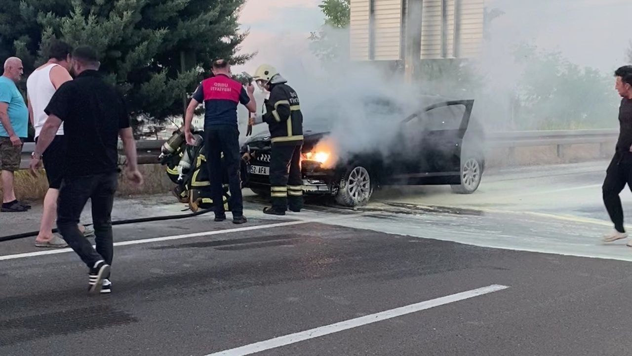 Olay, Ünye ilçesi Bayramca Mahallesi Yunus Emre Bulvarı üzerinde meydana geldi. Edinilen bilgiye göre, Aslan G. yönetimindeki 52 AFA 549 plakalı otomobilin motor bölümünden henüz belirlenemeyen bir nedenle dumanlar yükselmeye başladı. Dumanı fark eden sürücü, otomobili hemen emniyet şeridine çekerek durdurdu.