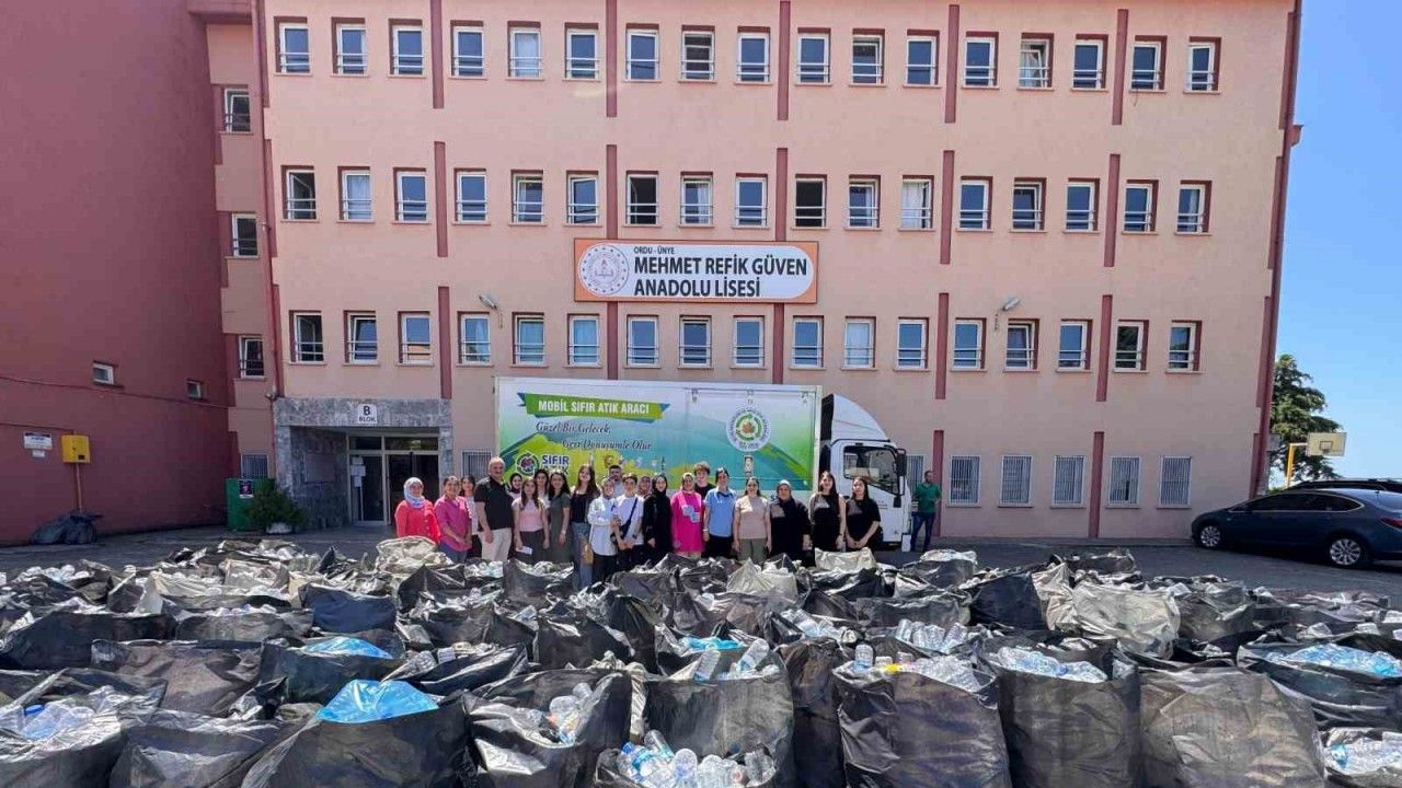 Ordu’nun Ünye ilçesinde lise öğrencileri çevre duyarlılığı bilinciyle biriktirdikleri pet şişeleri geri dönüşüme kazandırdı.
