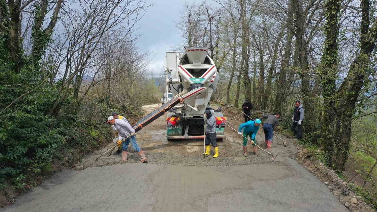 Ordu Büyükşehir Belediyesi tarafından kırsal mahallelerde ulaşım konforunu artırmak için beton yol çalışmaları devam ediyor.