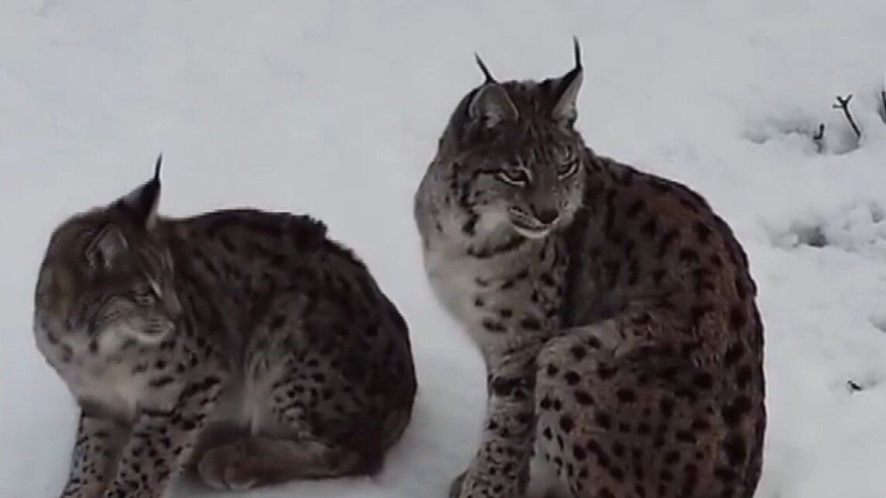 Nesli tükenme tehlikesi altında olan, kedigiller familyasına ait bir tür olan ve ormanın hayaleti olarak bilinen vaşak, çift olarak Erzincan'ın Refahiye ilçesine bağlı Kırkbulak köyü civarında karlı arazide Ozan Türkmen tarafından drone ile görüntülendi.