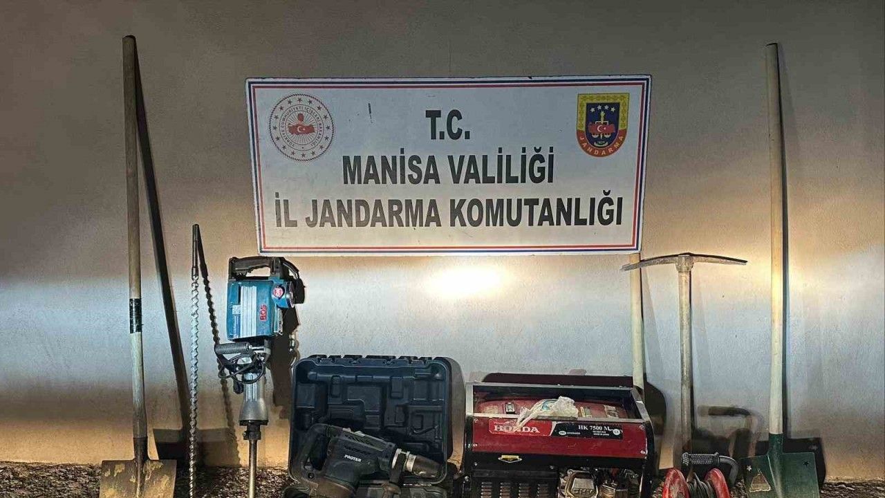 Manisa’nın Akhisar ilçesi Sazoba Mahallesinde gece saatlerinde alınan duyum üzerine harekete geçen jandarma ekipleri yaptıkları operasyonda F.Y. (E/47), R.T. (E/40) ve A.İ.G. (E/62) isimli şahısların ormanlık alan içerisinde izinsiz kazı yaptıklarını tespit ederek suçüstü yakaladı. Yapılan operasyonda şahıslarla birlikte olay yerinde kazıda kullanılan, 1 adet jenaratör, 1 adet hilti, 1 adet yeraltı görüntüleme cihazı, 1 adet matkap, 1 adet dedektör ve çeşitli kazı malzemelerine de el konuldu. Gözaltına alınan şahısların jandarmadaki sorgularının ardından adli makamlara sevk edileceği öğrenildi.