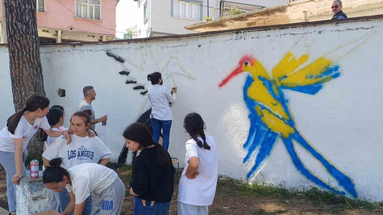 Köşk Başçayır Ortaokulu ve İlkokul öğrencileri okul bahçesinin yerlerini ve duvarlarını çiçek ve çeşitli motif resimleriyle süsledi.