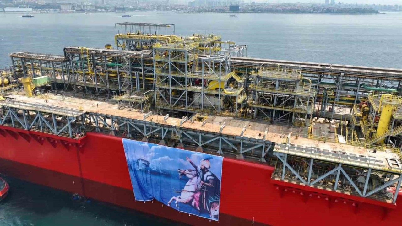 Türkiye’nin enerji alanındaki dev projelerinden biri olan yüzer doğalgaz üretim platformu "Osman Gazi", İstanbul’un fethinin 572. yıl dönümünde 15 Temmuz Şehitler Köprüsü’nün altından geçerek Karadeniz’e doğru yol aldı. Dev platformun geçişi havadan görüntülenirken, platformun üzerinde Fatih Sultan Mehmet Han’ın fotoğrafının asılı olduğu görüldü.
