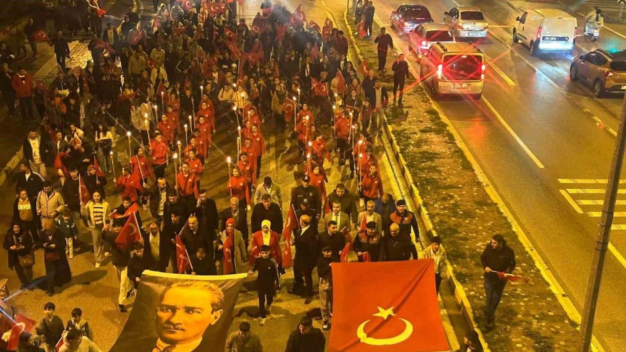 Bilecik’in Osmaneli ilçesinde 29 Ekim Cumhuriyet Bayramı’nın 102’inci Yıl Dönümü kutlamaları kapsamında Cumhuriyet yürüyüşü ve fener alayı düzenlendi.