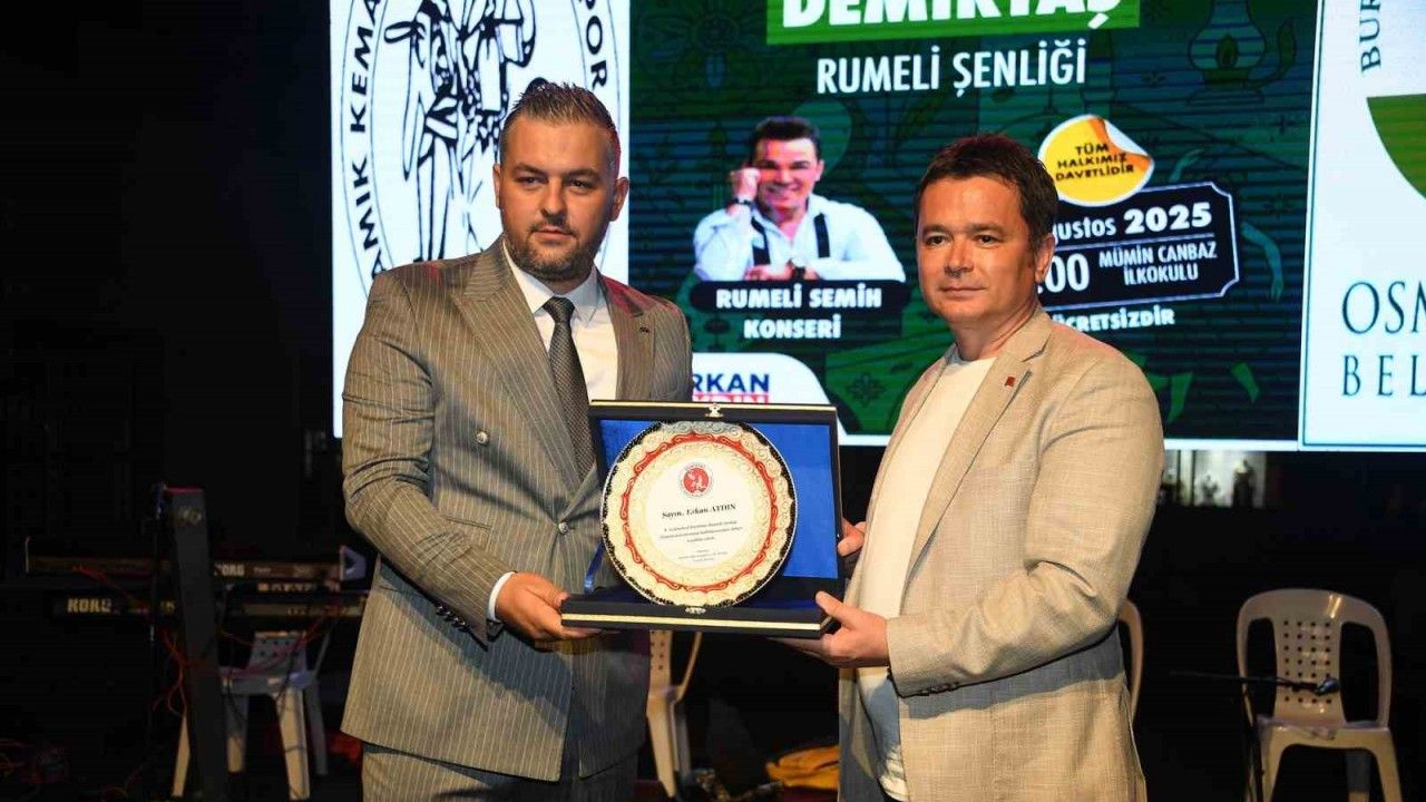 Demirtaş Rumeli Halk Oyunları Ekibi Yönetim Kurulu Başkanı Salih Alan da katkılarından dolayı Başkan Erkan Aydın’a teşekkür plaketi sundu. Gece, Rumeli Semih’in verdiği konser ile sona erdi.
