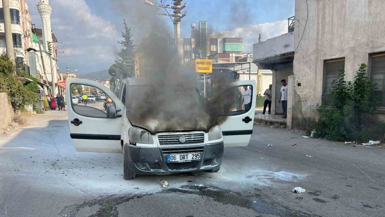 Osmaniye’de alev alev yanan hafif ticari aracı itfaiye ekipleri söndürdü.