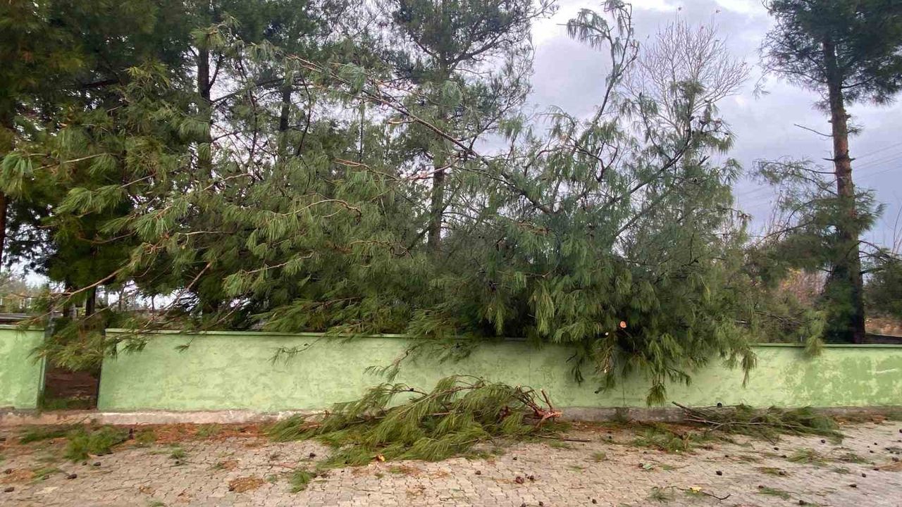 Daha önce böyle bir rüzgar ve kar yağışı olmadı diyen Karacaoğlan Mahallesi Muhtarı Mustafa Kıraç, 'Bölgemizde 2 gündür etkili olan sel ve rüzgarın etkisiyle mezarlığımızdaki büyük çam ağaçları yıkıldı. Birkaç çam ağacının devrilmesiyle yol kapandı ve bazı mezarlar zarar gördü. Bakın, bu mezarımızın yanında çam ağacı vardı. Çam sökülünce zaten oradaki toprağı kepçe ile dışarı aldılar. Daha sonra mezarlığımızı yeniden düzelttik. Yıkılan çam ağaçlarından birkaç tanesi mezarların üzerine devrildi. 2 gündür süren yağmur nedeniyle bu çamları kesip kaldıramadık. Bundan 20-25 yıl önce de böyle bir kar yağışı olmuştu ama bu rüzgar çok felaket bir rüzgardı. Yıkılmadık ağaç bırakmadı, zaten ağaçlarımız göz önünde' diye konuştu.