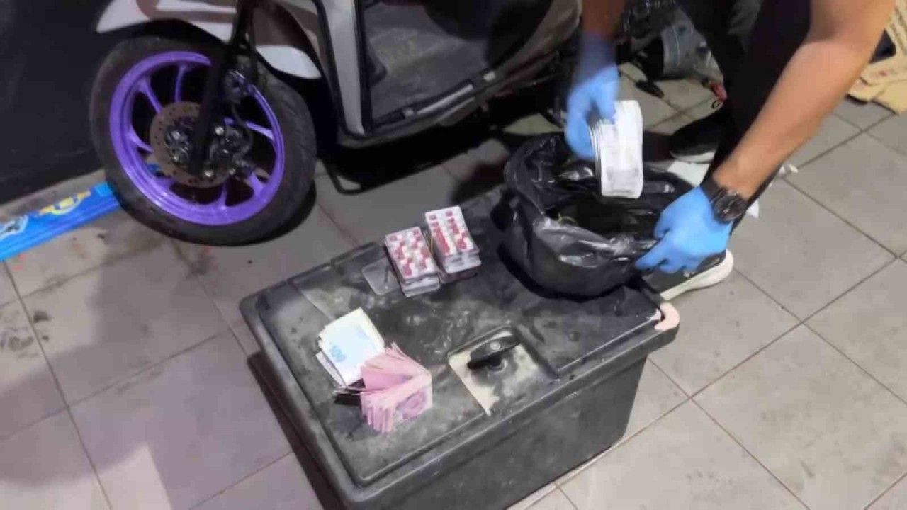 İş yerinde ve B.K.’nin aracında yapılan aramada 74 bin 697 uyuşturucu hap, 3 ruhsatsız tabanca, 38 ecstacy hap, 6.33 gram esrar ve suçtan elde edildiği öne sürülen 401 bin 390 TL para ele geçirildi.