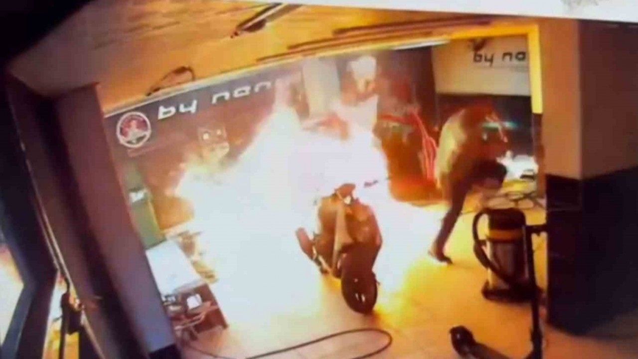 Manisa’nın Şehzadeler ilçesindeki bir kişinin hayatını kaybettiği yangına ilişkin güvenlik kamerası görüntüleri ortaya çıktı. Benzin kaçıran aracın neden olduğu yangında birden alevlerin arasında kalan iş yeri sahibi Şerafettin Akın Ak’ın son görüntüleri güvenlik kamerası tarafından saniye saniye kaydedildi.