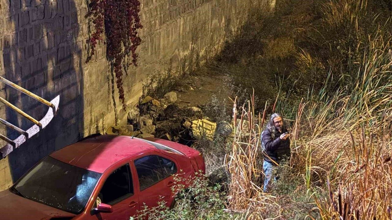 Kayseri’nin Kocasinan ilçesinde 5 metrelik kanala uçan otomobilin sürücüsü, kanaldan merdiveni tırmanarak çıktı.