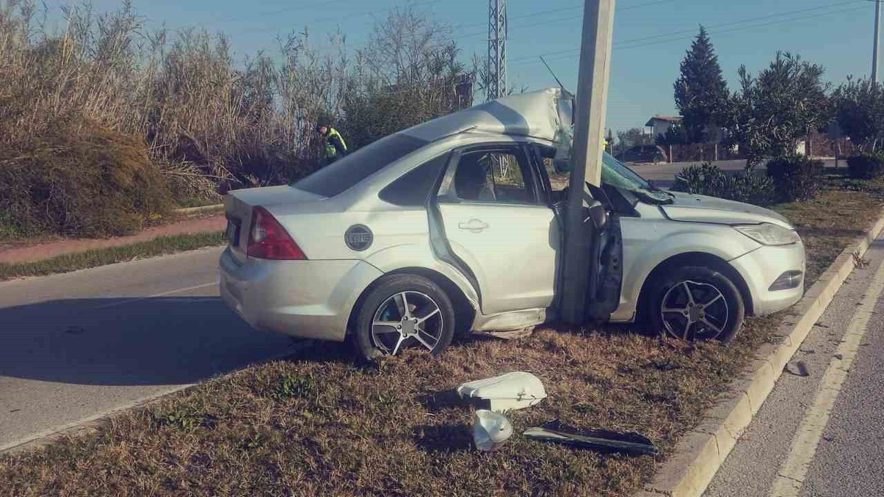 Antalya’nın Manavgat ilçesinde seyir halindeki otomobilin, refüjdeki aydınlatma direğine çarpması sonucu gerçekleşen kazada otomobil sürücüsü yaralandı.