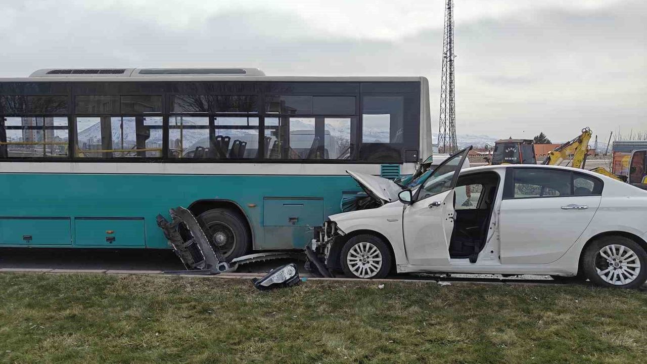 Kayseri'nin Melikgazi ilçesinde otomobilin halk otobüsüne çarpması sonucu meydana gelen kazada araçlarda maddi oluştu.