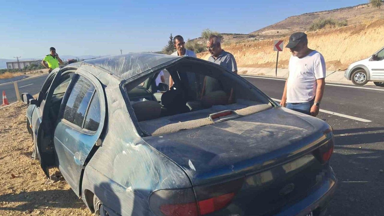 Kilis-Hatay kara yolunda taklalar atan araçta bulunan çift şans eseri yara almadan kurtuldu.