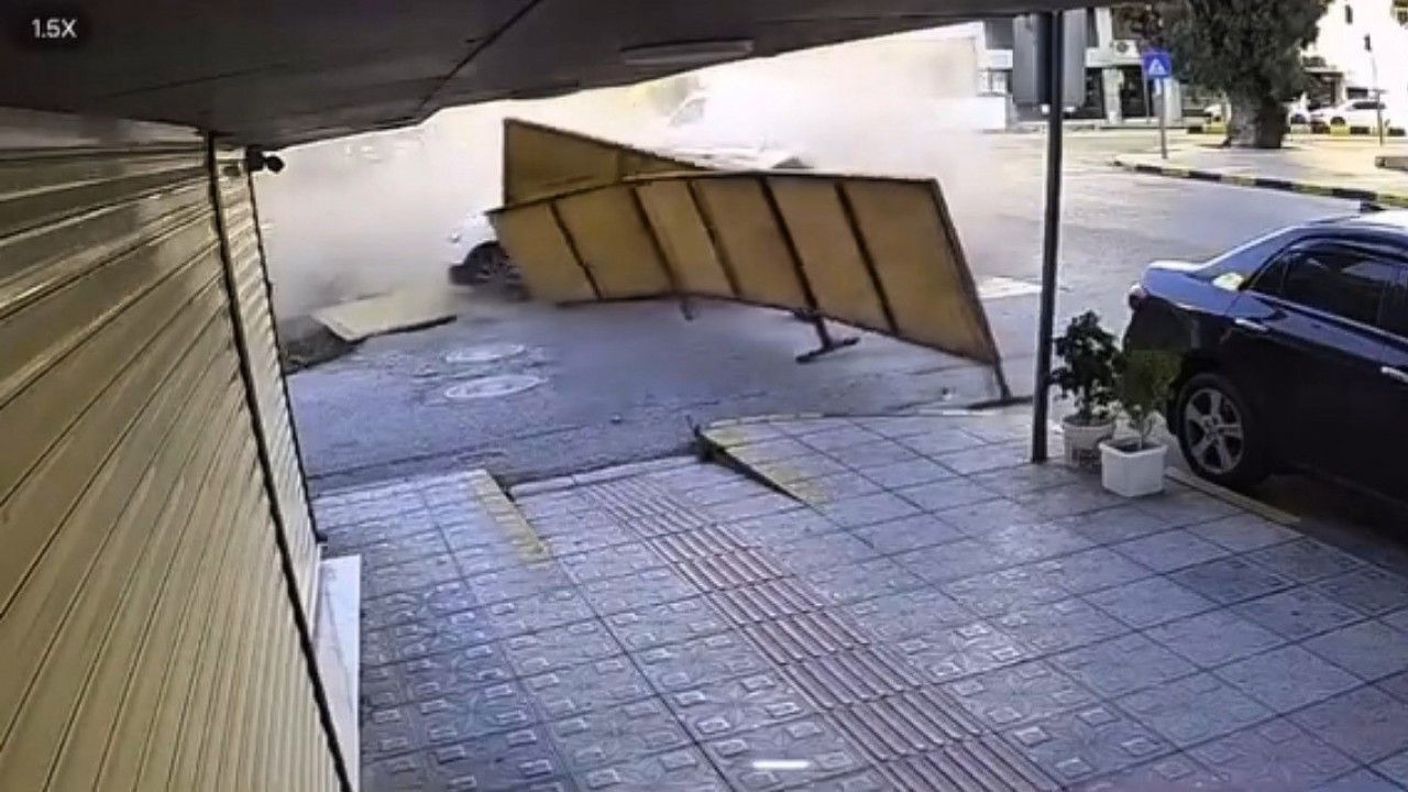 Hatay’ın İskenderun ilçesinde otomobille çarpışan cipin inşaatı çevreleyen bariyerleri yıktığı anlar güvenlik kamerasına yansıdı.