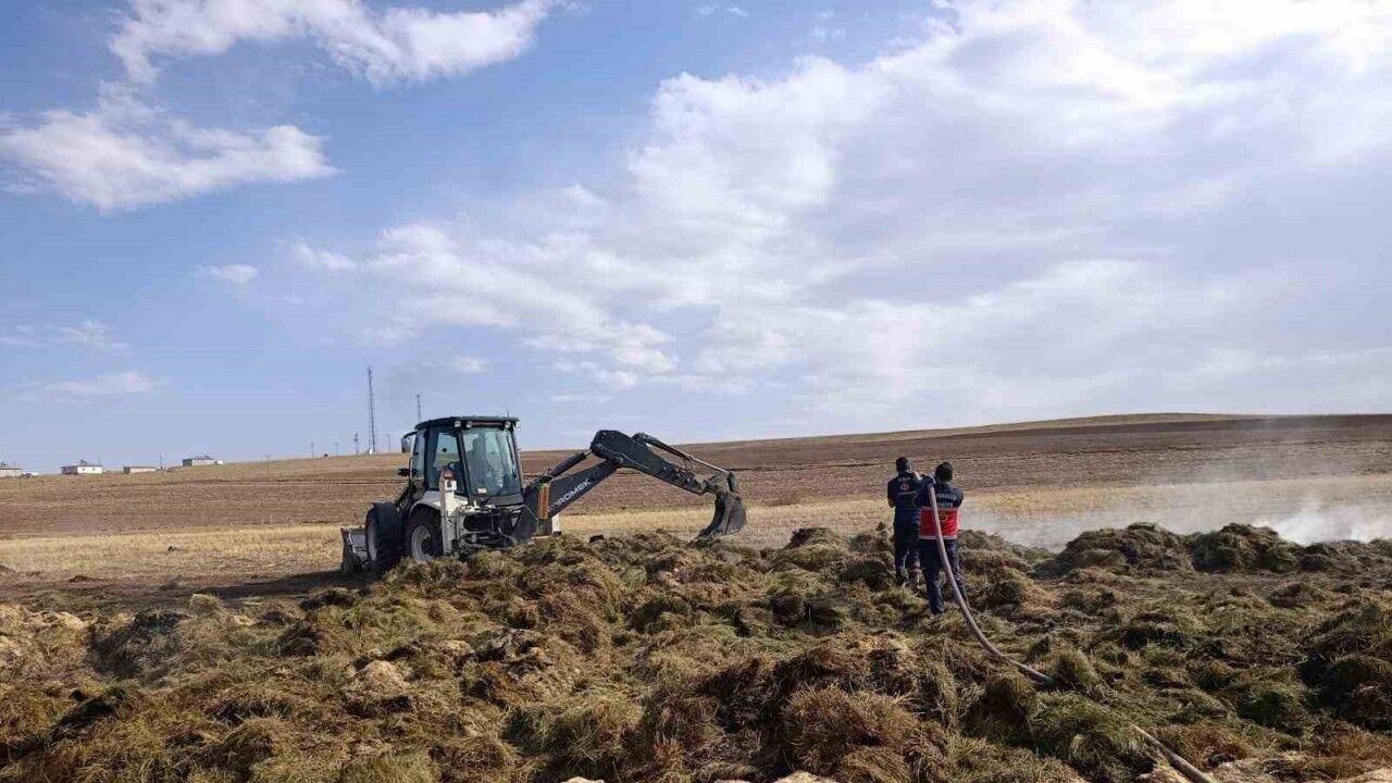 Van’ın Özalp ilçesinde 3 saatlik çalışmasıyla söndürülen yangında 700 bağ ot, 7 ton saman küle döndü.