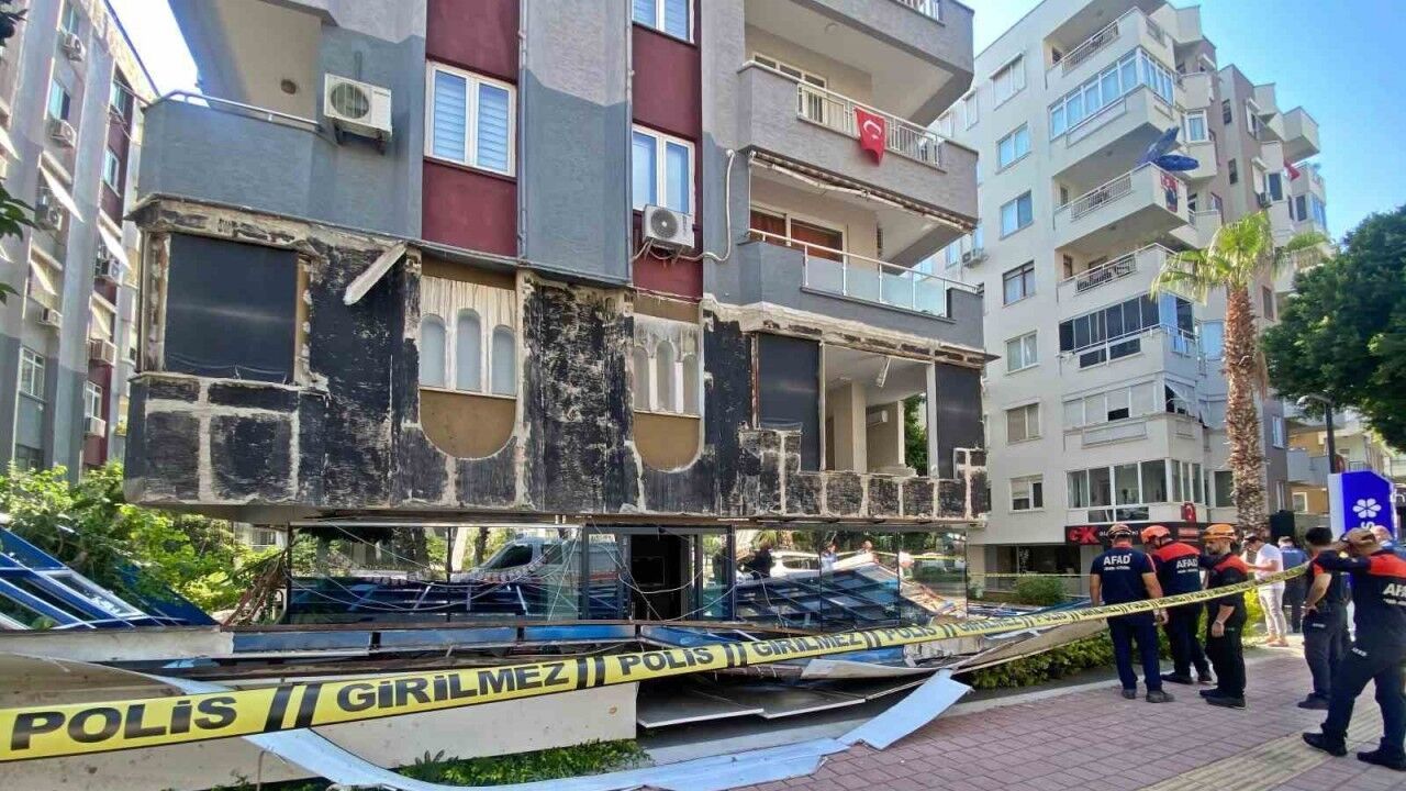 Olay, sabah 08.30 sıralarında Muratpaşa ilçesine bağlı Demircikara Mahallesi Burhanettin Onat Caddesi üzerindeki bir apartmanın giriş katında meydana geldi. Edinilen bilgiye göre, 5 katlı apartmanın zemin ve üst katında hizmet veren Özel Synevo Laboratuvarı’nın ön ve iki yan cephesinde üzerinde reklam panolarının bulunduğu dış cephe kaplaması henüz bilinmeyen bir sebeple yerinden koparak büyük bir gürültüyle düştü. Sese uyanan apartman sakinleri durumu 112 Acil Çağrı Merkezine bildirdi. İhbarın ardından olay yerine, polis, AFAD ve itfaiye ekipleri sevk edildi.