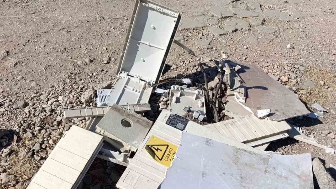 Adıyaman’da, bir aracın çarpması sonucu parçalanan elektrik trafosu yol kenarında tehlike saçıyor.