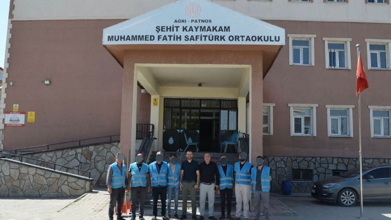 Ağrı’nın Patnos ilçesinde, kamuya yararlı bir işte ücretsiz çalıştırılmaya ilişkin işbirliği protokolü kapsamında yükümlüler, Şehit Kaymakam Muhammed Fatih Safitürk Ortaokulu’nda temizlik ve düzenleme çalışmaları gerçekleştirdi.