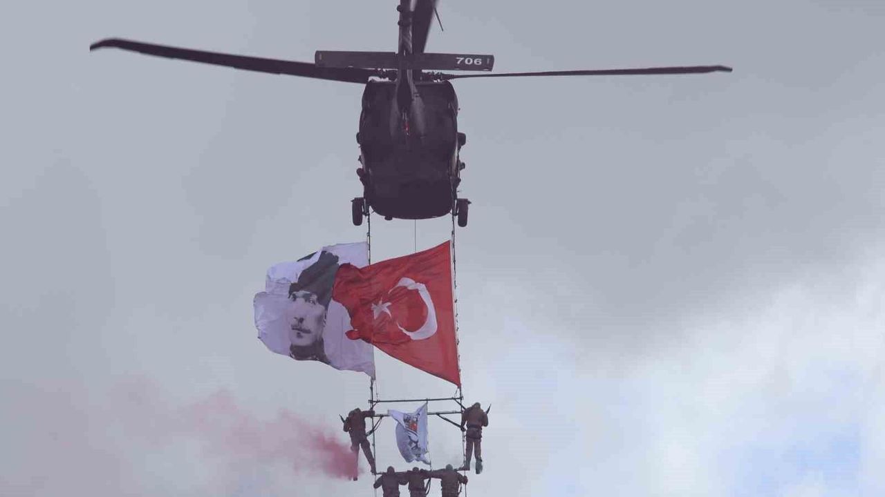 Sivas'ta Polis Haftası kutlamalarında özel harekat polislerinin helikopterli gösterisi izleyenlerin takdirini topladı.