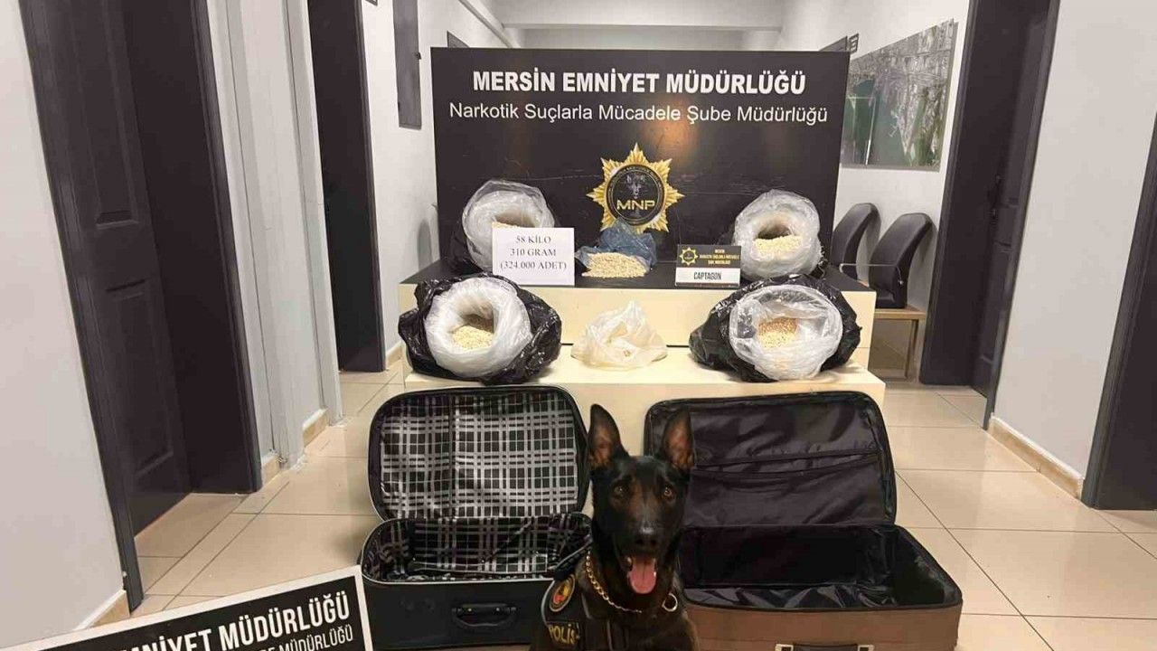 Mersin polisinin yaptığı çalışmada 4 şüpheli yakalandı, 58 kilo 310 gram olduğu öğrenilen binlerce adet uyuşturucu hap ele geçirdi.